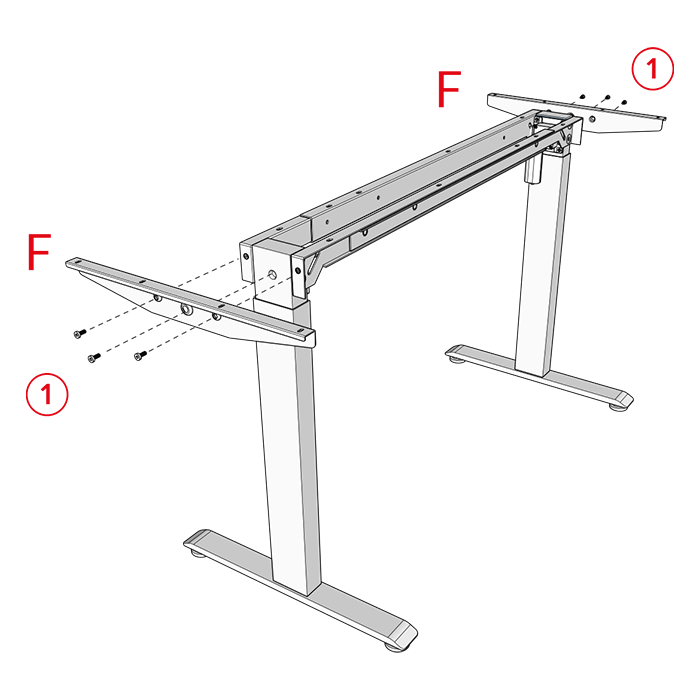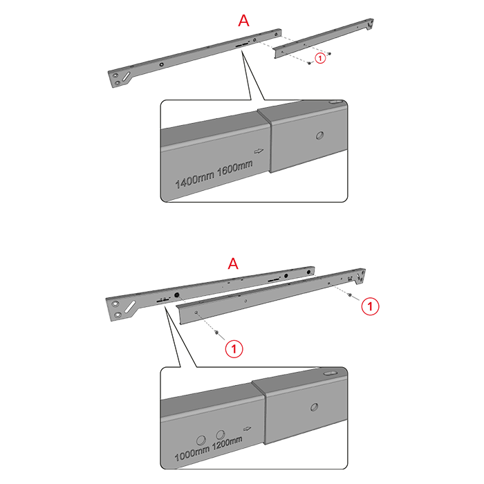Step 1. Please read the safety guidelines stated above before you start to assemble the product. Assemble supporting beam (A) of the desk. Select the correct length of beam according to the size of your top: 1000mm-1200mm for a 1200mm long top or 1400mm-1600mm for a 1500mm long top.