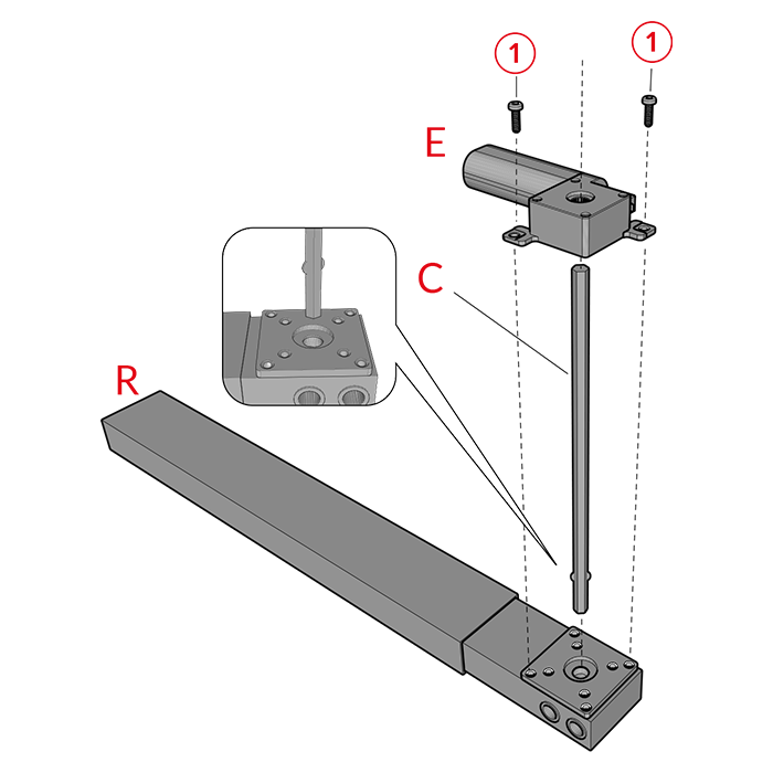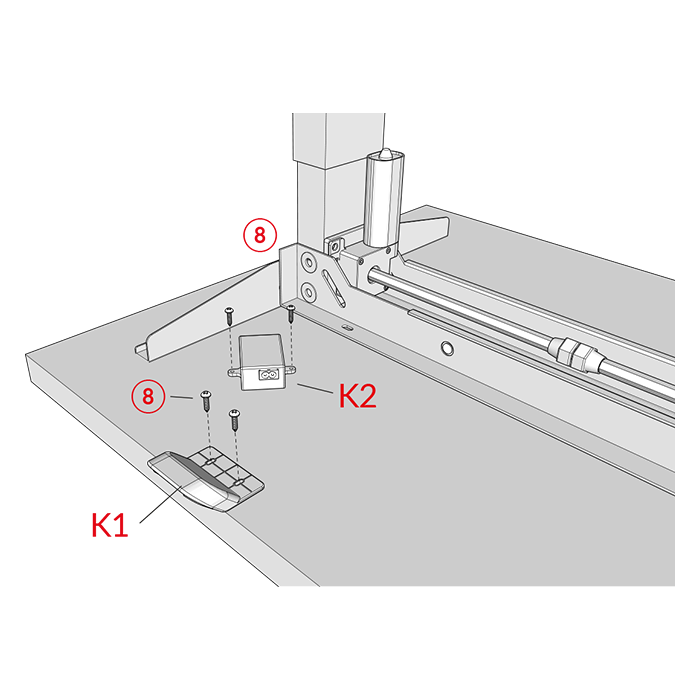 Step 10. Attach the control unit (K1) and the power block (K2) with screws (8) to the top.