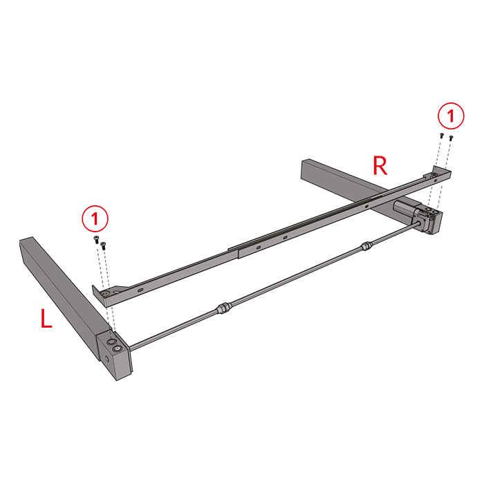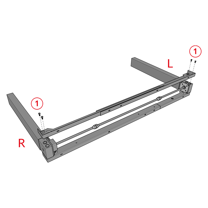 Step 6. Attach rear supporting beam (A) to legs (L, R).