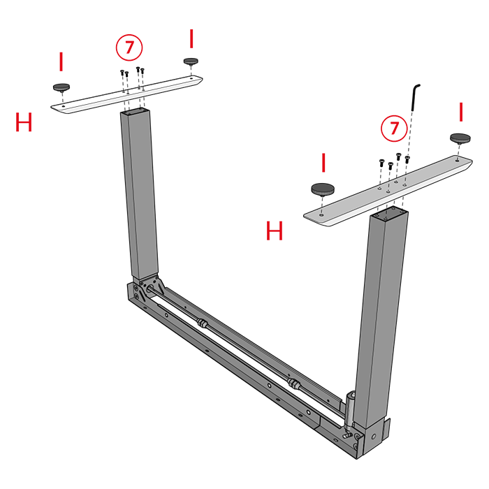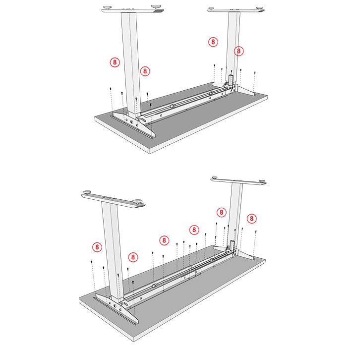 Step 9. Attach the leg assembly to the wood top, using the provided screws (8).