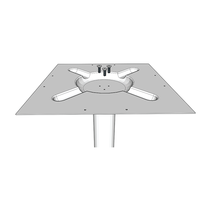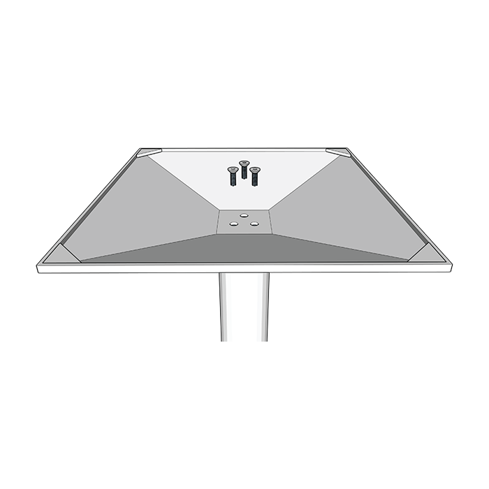 Fasten the top plate to the upright using the M8 Allen bolts using the M8 Allen Key. There are 3 fittings on both ends of the cylindrical upright. Please ensure all bolts are threaded correctly before tightening to avoid misalignment.
