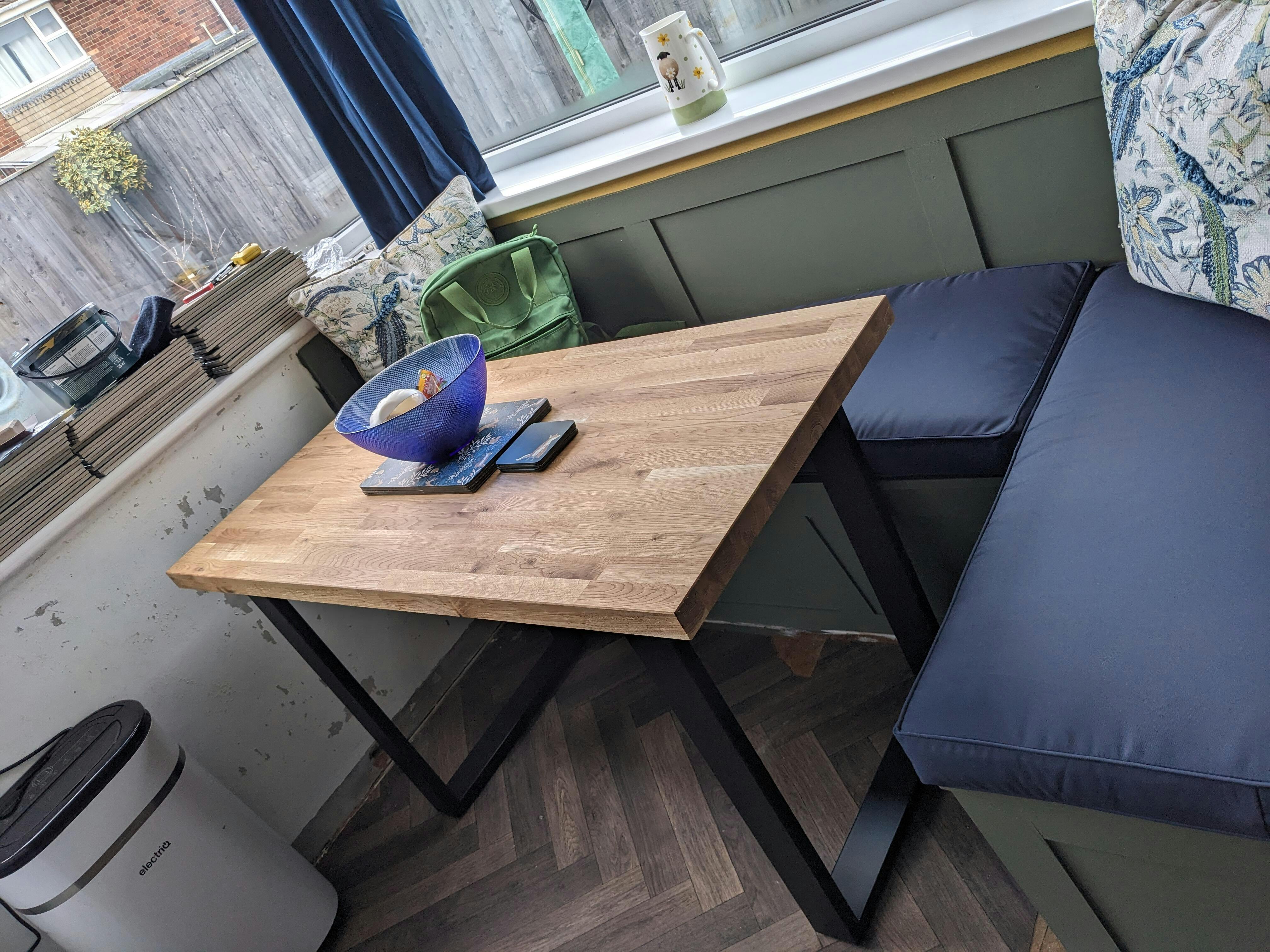 Solid Oak Table with Square Metal Legs - 40mm thick tabletop