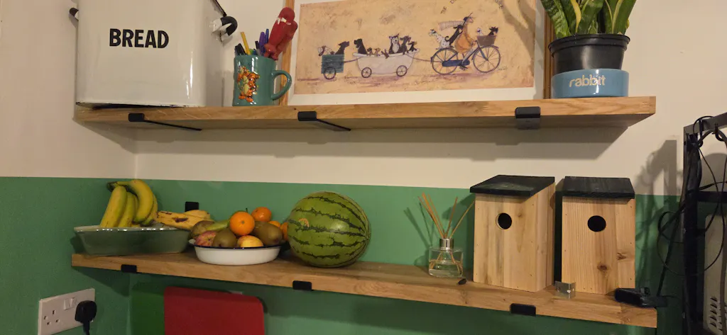 "Delighted with our oak shelf. Brackets set it off beautifully. It is a piece of furniture in its own right."