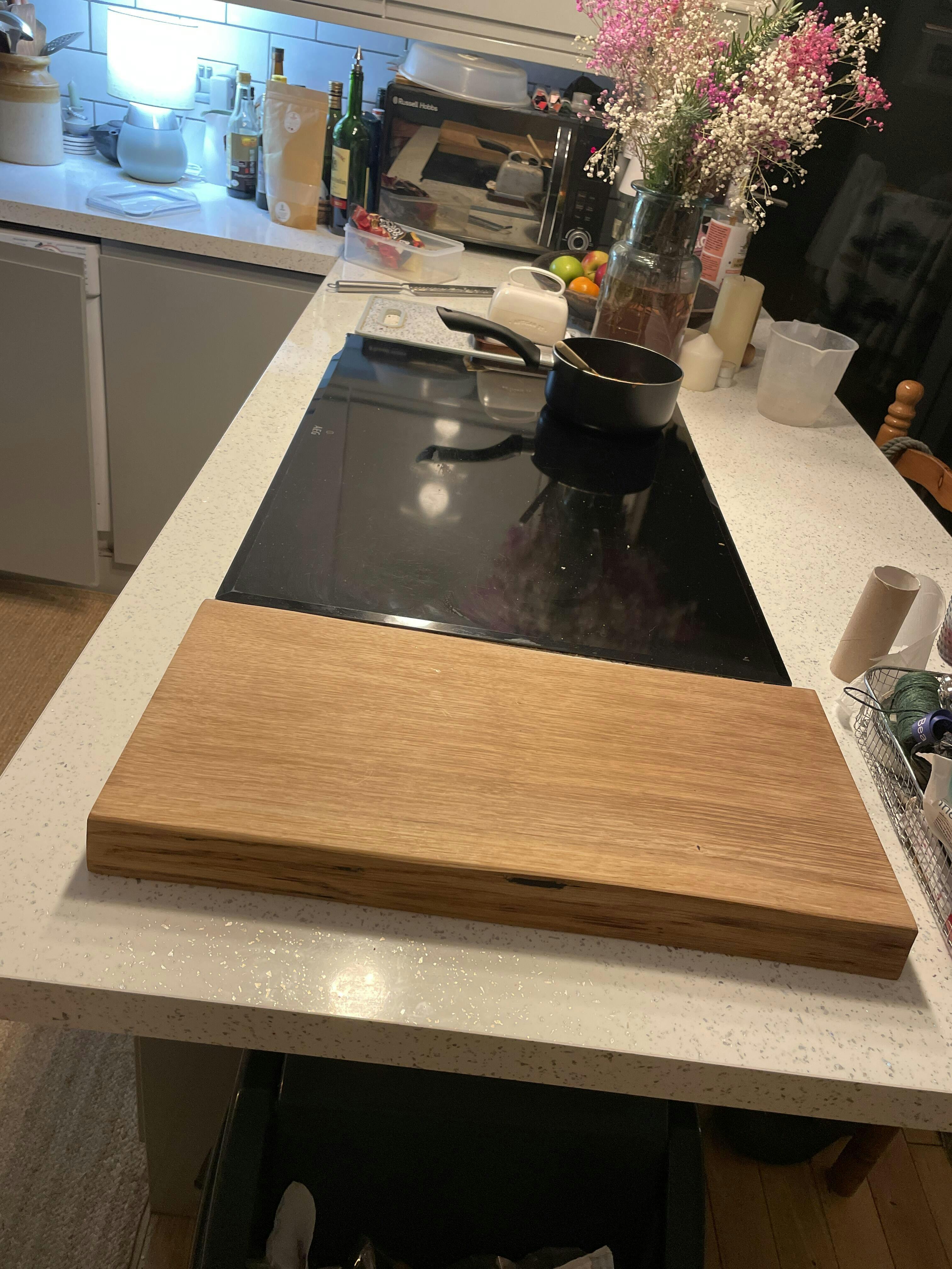 After each use, clean the board with warm, soapy water, dry it immediately, and let it air dry fully before storing. For deeper cleaning or to remove odours, sprinkle coarse salt over the surface and rub gently with half a lemon, then wipe and allow it to dry completely before re-oiling. If additional antibacterial cleaning is required, use a food-safe solution such as diluted white vinegar or Osmo Anti-Bac Wood Cleaner, both of which are gentle yet effective on natural wood. Please rinse thoroughly with water before next use.